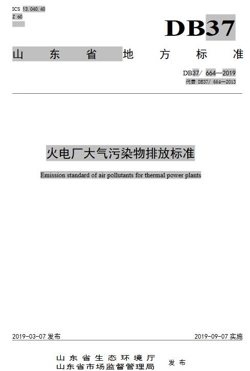 日前,山東印發(fā)《火電廠大氣污染物排放標準(DB37/ 664—2019代替DB37/ 664—2013)》。標準將于2019年9月7日實施。