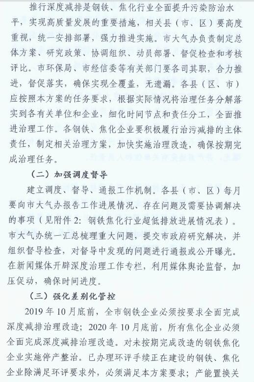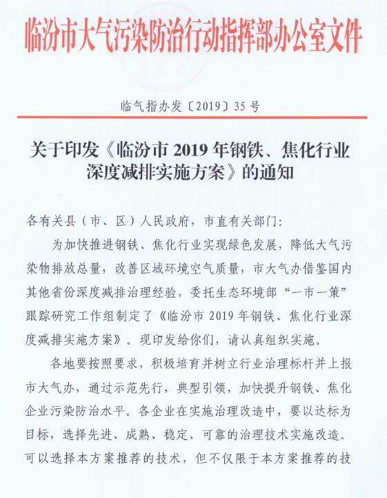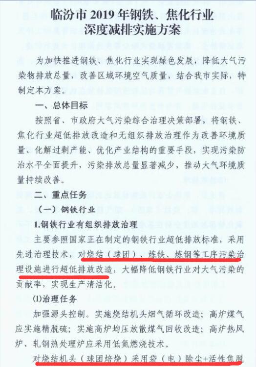 日前,山西臨汾印發(fā)《臨汾市2019年鋼鐵、焦化行業(yè)深度減排實(shí)施方案》。方案要求: