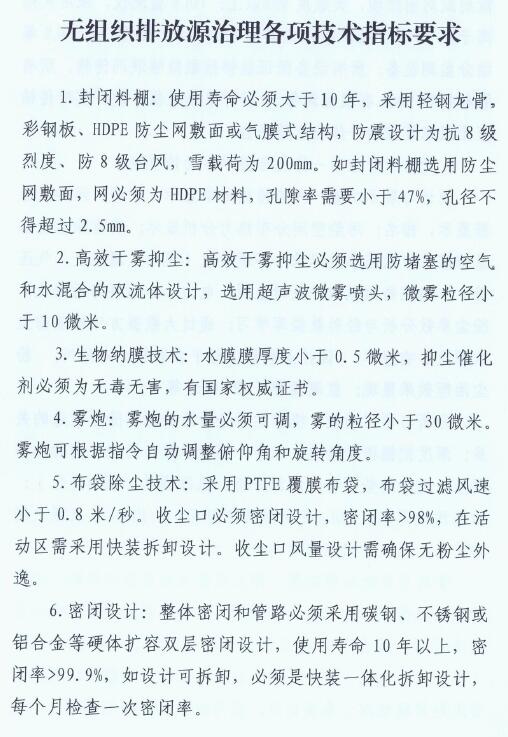 驗(yàn)收標(biāo)準(zhǔn):改造后,鋼鐵企業(yè)主要無組織排放源周邊1米處,顆粒物濃度小于5mg/m3;經(jīng)收集處理后的顆粒物有組織排放濃度小于10mg/m3 。