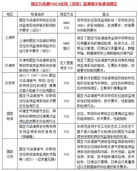 1)上海:《上海市固定污染源非甲烷總烴在線監(jiān)測系統(tǒng)安裝及聯(lián)網(wǎng)技術要求(試行)》、《上海市固定污染源非甲烷總烴在線監(jiān)測系統(tǒng)驗收及運行技術要求(試行)》;