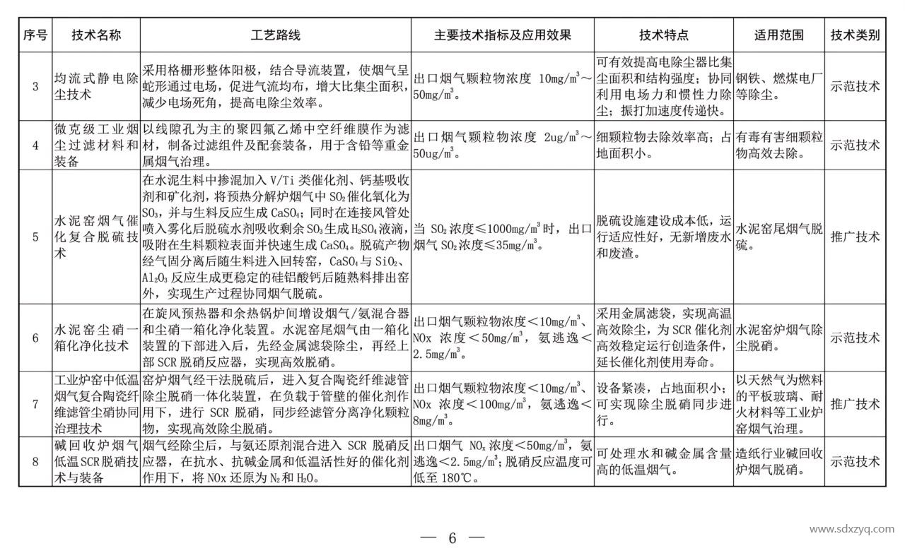 本次征求意見(jiàn)的《目錄》共有19項(xiàng)技術(shù),覆蓋了除塵、脫硫脫硝、VOCs治理、惡臭氣體等多個(gè)大氣污染防治的細(xì)分領(lǐng)域。這些技術(shù)被分為推廣技術(shù)和示范技術(shù)兩大類(lèi),其中推廣技術(shù)6項(xiàng),示范技術(shù)13項(xiàng)。推廣技術(shù)指的是那些經(jīng)過(guò)實(shí)踐證明成熟可靠、治理效果穩(wěn)定且經(jīng)濟(jì)合理的技術(shù),而示范技術(shù)則是指具有創(chuàng)新性、技術(shù)指標(biāo)先進(jìn)、治理效果好,并基本達(dá)到實(shí)際工程應(yīng)用水平的技術(shù)。