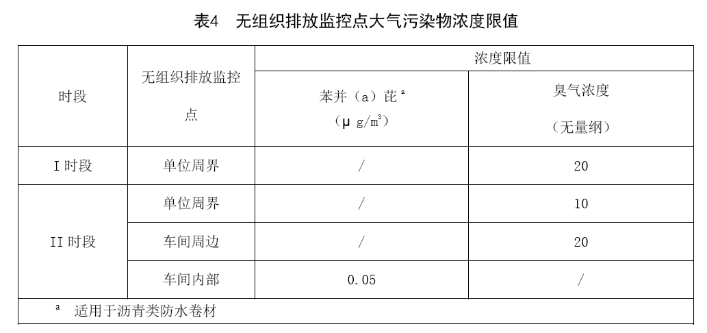 苯并芘和臭氣濃度無(wú)組織排放執(zhí)行表4規(guī)定。