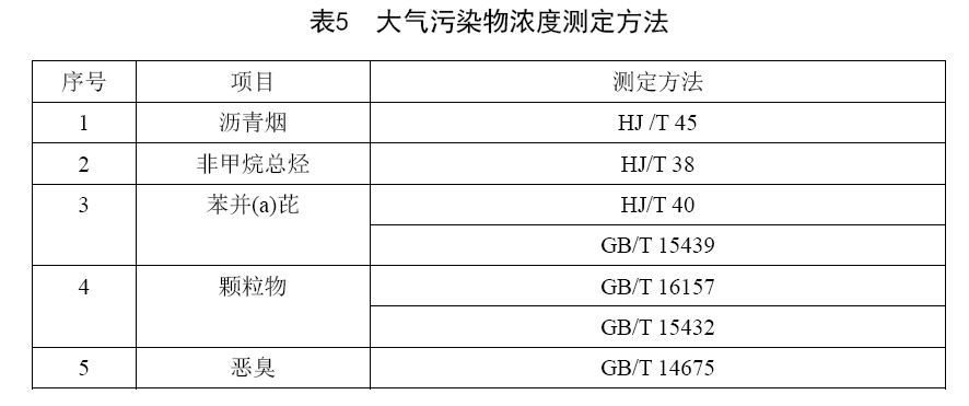 本標(biāo)準(zhǔn)大氣污染物濃度測(cè)定方法按表5執(zhí)行。