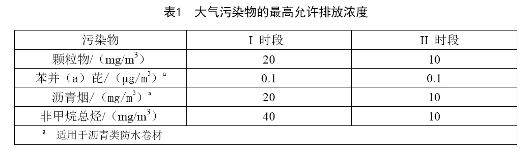 防水卷材行業(yè)大氣污染物排放標(biāo)準(zhǔn)
