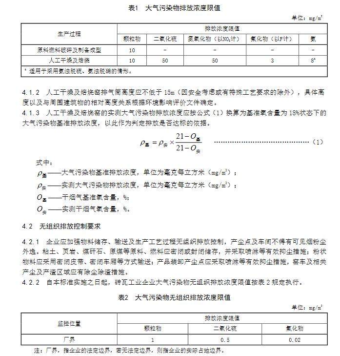 本文件規(guī)定了磚瓦工業(yè)大氣污染物排放控制要求、監(jiān)測和監(jiān)督管理要求。