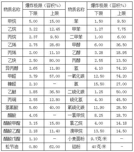 這是由于前者的可燃物濃度不夠,過(guò)量空氣的冷卻作用,阻止了火焰的蔓延;而后者則是空氣不足,導(dǎo)致火焰不能蔓延的緣故。常見(jiàn)物質(zhì)的爆炸極限如下,僅供參考: