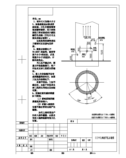 2、開孔的位置位于煙囪直徑的四倍處,開相應(yīng)的4-5個孔,如圖