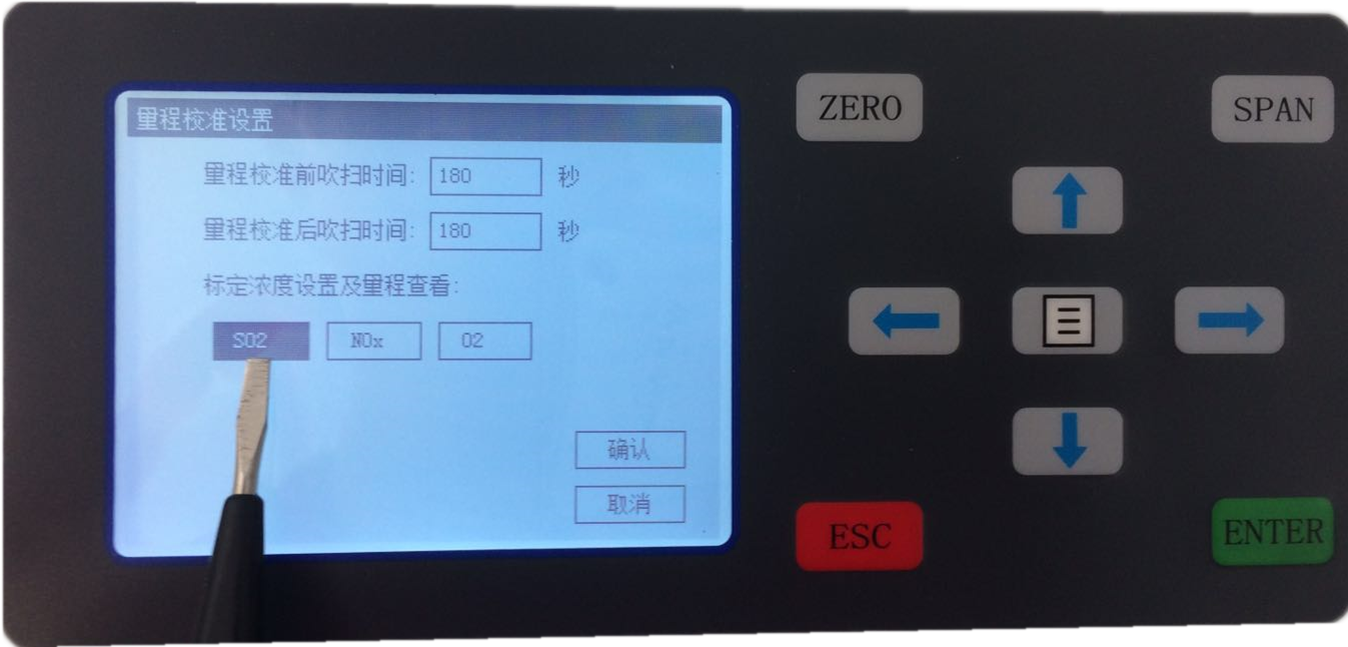 4.2.5按ESC鍵,返回上一級(jí),選擇NOx,按ENTER鍵進(jìn)行量程校準(zhǔn):