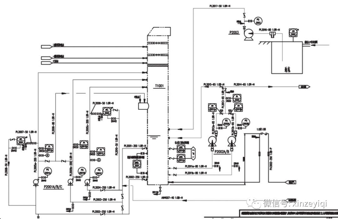 工藝水共有三路,一路為化工區(qū)凈循環(huán)工業(yè)廢水做為主路,一路為循環(huán)水,另一路為生產水(做備用)經(jīng)計量后進入工藝水槽儲存,工藝水槽中的工藝水經(jīng)工藝水泵輸送至各用水點,包括塔頂補水、除霧器沖洗水、各泵進口沖洗水、離心機沖洗水等。