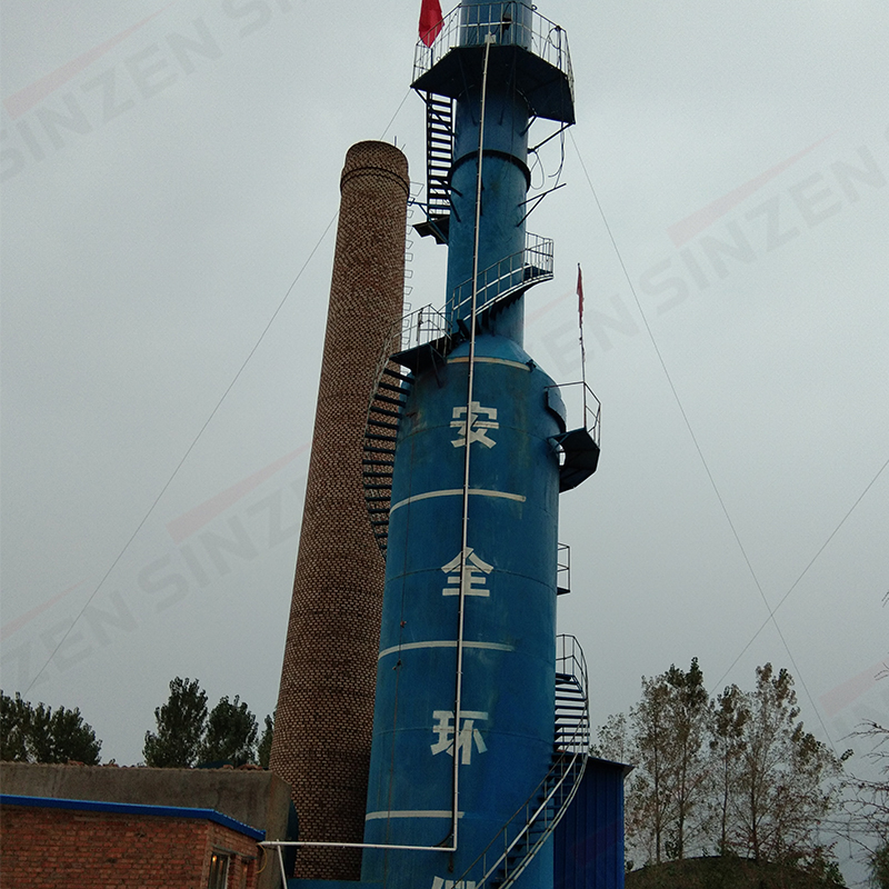 脫硫塔主要由筒體,噴霧裝置、篩板、脫水除霧裝置、溢水孔、清理孔等組成,其工作原理是:含煙塵及硫氧化物的煙氣流通過(guò)進(jìn)口煙道進(jìn)入筒體,含有[OH-]離子的堿性水分別從脫硫塔上中下部由螺旋噴嘴噴出,形成與煙氣成逆向的多排高速霧化水幕,增加了煙塵硫氧化物與水的碰撞概率,并充分利用霧化液滴的速度來(lái)造成很高的氣液相對(duì)速度,以保證除塵和脫硫效果。同時(shí)氣體經(jīng)過(guò)篩板時(shí)對(duì)篩板上的液層產(chǎn)生鼓泡作用,增加了氣液傳質(zhì)的表面積和湍動(dòng)狀態(tài),提高了傳質(zhì)速率,二氧化硫與堿液發(fā)生氣液交換,進(jìn)一步提高了脫硫效果。脫硫生成物隨水流到脫硫塔底部,從溢水孔排走,在筒體底部封底并設(shè)有水封槽以防止煙氣從底部泄漏,備有清理孔便于進(jìn)行筒體底部清理。脫硫后廢水由底部溢流孔排出進(jìn)入沉淀池,沉淀中和再生,循環(huán)使用。凈化后的氣體,通過(guò)筒體上部經(jīng)除霧后引出,從而達(dá)到除塵脫硫目的。