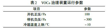 VOCs 治理裝置主要運(yùn)行參數(shù)如表2。