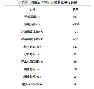 調(diào)整后VOCs 治理裝置主要運(yùn)行參數(shù)如表3。