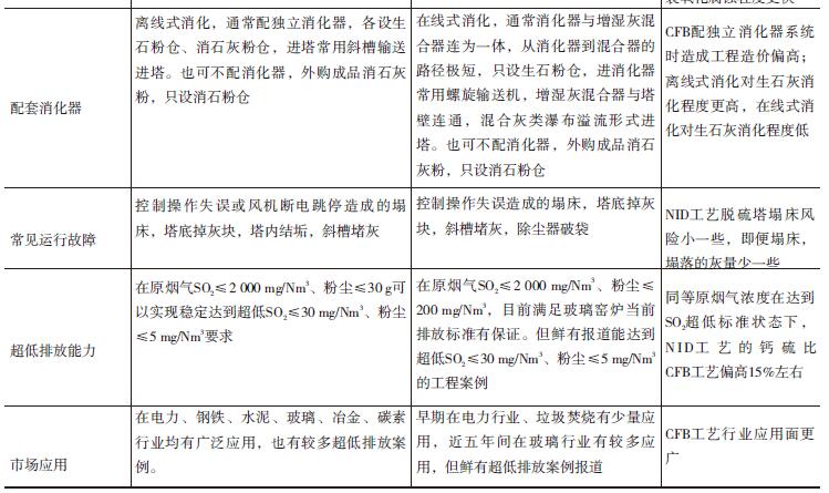 ( 1) 從工程實踐應用來說, CFB-FGD、NID-FGD兩種脫硫除塵工藝在平板玻璃窯爐都有較多的應用案例,都能實現(xiàn)長期穩(wěn)定運行,重在運行管理,及時發(fā)現(xiàn)輔助設備運行中顯現(xiàn)的問題,避免設備帶病運行;