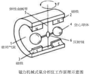 基本原理:其工作原理是基于氧的順磁性,一個(gè)小的逆磁性的啞鈴懸掛在非均勻磁場(chǎng)中,當(dāng)被測(cè)氣體中有氧氣存在時(shí),氧分子受磁場(chǎng)吸引導(dǎo)致啞鈴旋轉(zhuǎn)、補(bǔ)償力矩的張力要將啞鈴維持在原來的位置,張力的大小與樣氣中的氧分壓成正比。被測(cè)氣體氧含量不同,旋轉(zhuǎn)力矩和復(fù)位力矩的平衡位置就不同,也就是啞鈴的偏轉(zhuǎn)角度就不同,這樣,啞鈴偏轉(zhuǎn)角度的大小,就反映了被測(cè)氣體中氧含量的多少。對(duì)啞鈴球偏轉(zhuǎn)角度的測(cè)量,大多是采用光電系統(tǒng)來完成的。