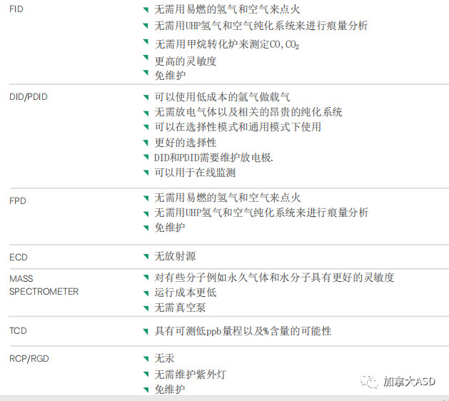 增強(qiáng)等離子體放電技術(shù)可以代替許多形式的檢測(cè)器,詳見(jiàn)下表